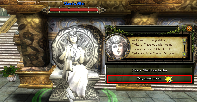 830,665 koordinatlarında bulunan Akara’s Altar yapısını seçerek sağ tıklamalı ve hemen sonrasında açılan seçeneklerden resimde gösterilen (Yes, count me in!) seçeneği seçilmelidir.