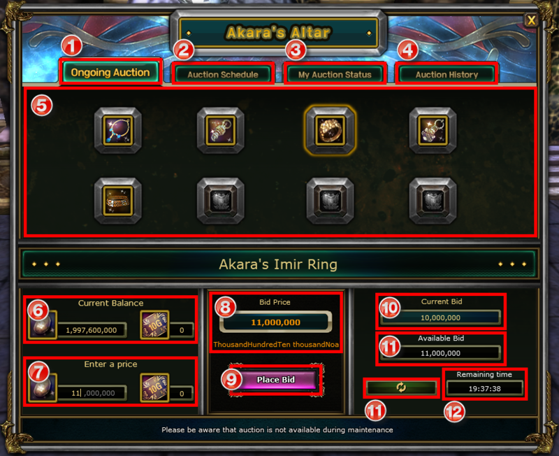 * Eğer verdiğiniz teklif başkası tarafından geçildiyse o zaman teklif için verdiğiniz Noah ve Mithril Çek’leri teslim alabilirsiniz. Geri alma noktası Akara’nın Sunağı’dır.