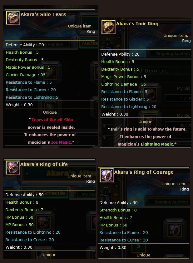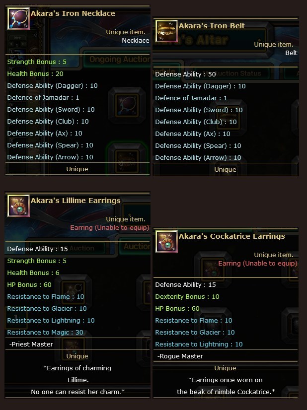 Oyundaki birtakım takı eşyaları ile iki adet Scroll’u müzayede sistemi sayesinde elde edebilirsiniz.