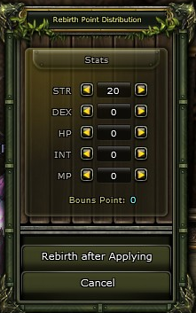 10- Stat Pointleri vereceğimiz Pencere açılıyor.Ordan istediğimize verip ” Rebirth after Applying ” seçiyoruz.